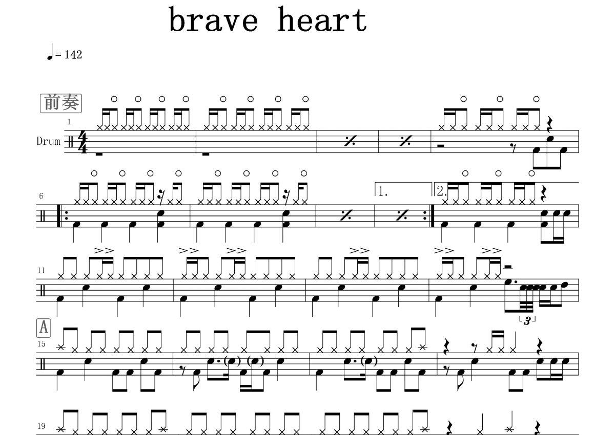 宫崎步《brave heart》鼓谱 - 架子鼓谱