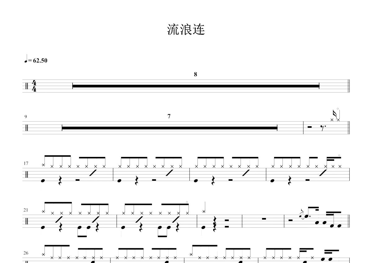 茄子蛋《浪流连》鼓谱 - 架子鼓谱