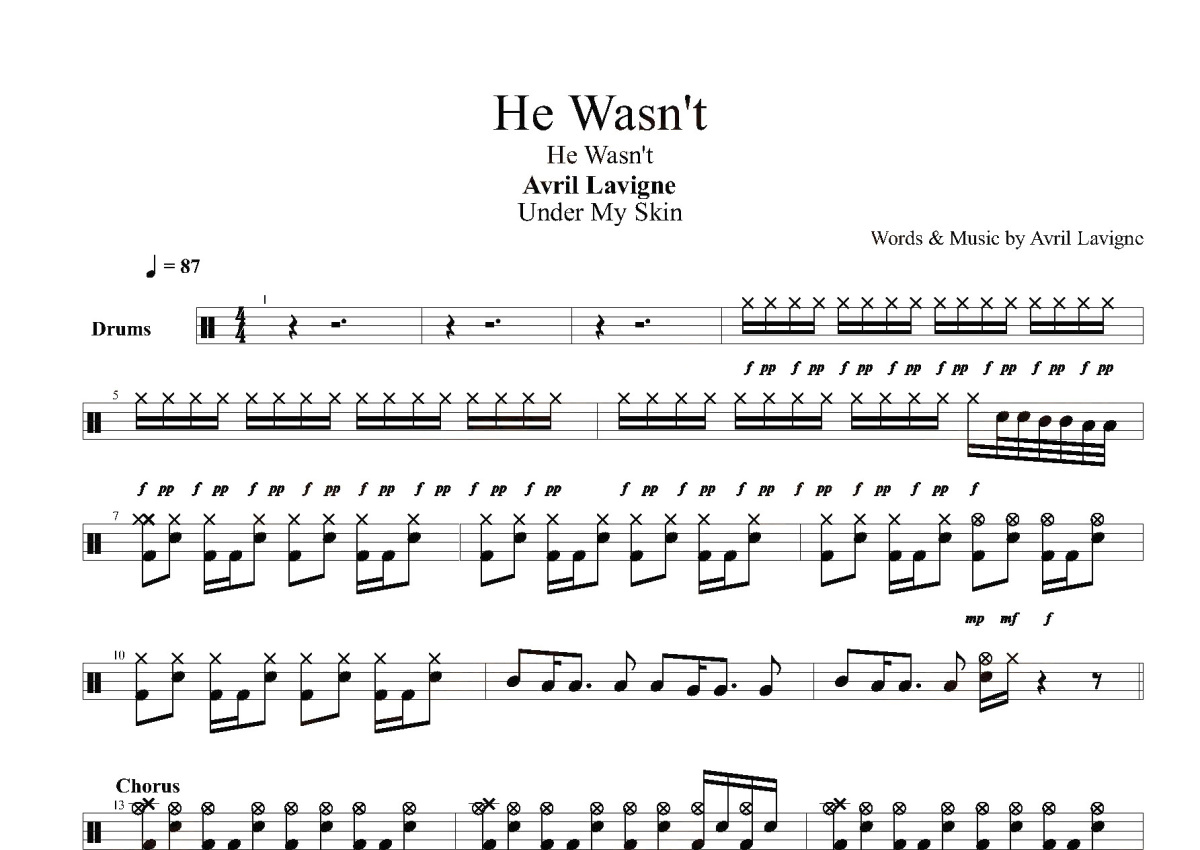 Avril Lavigne《He Wasn't》鼓谱 - 架子鼓谱