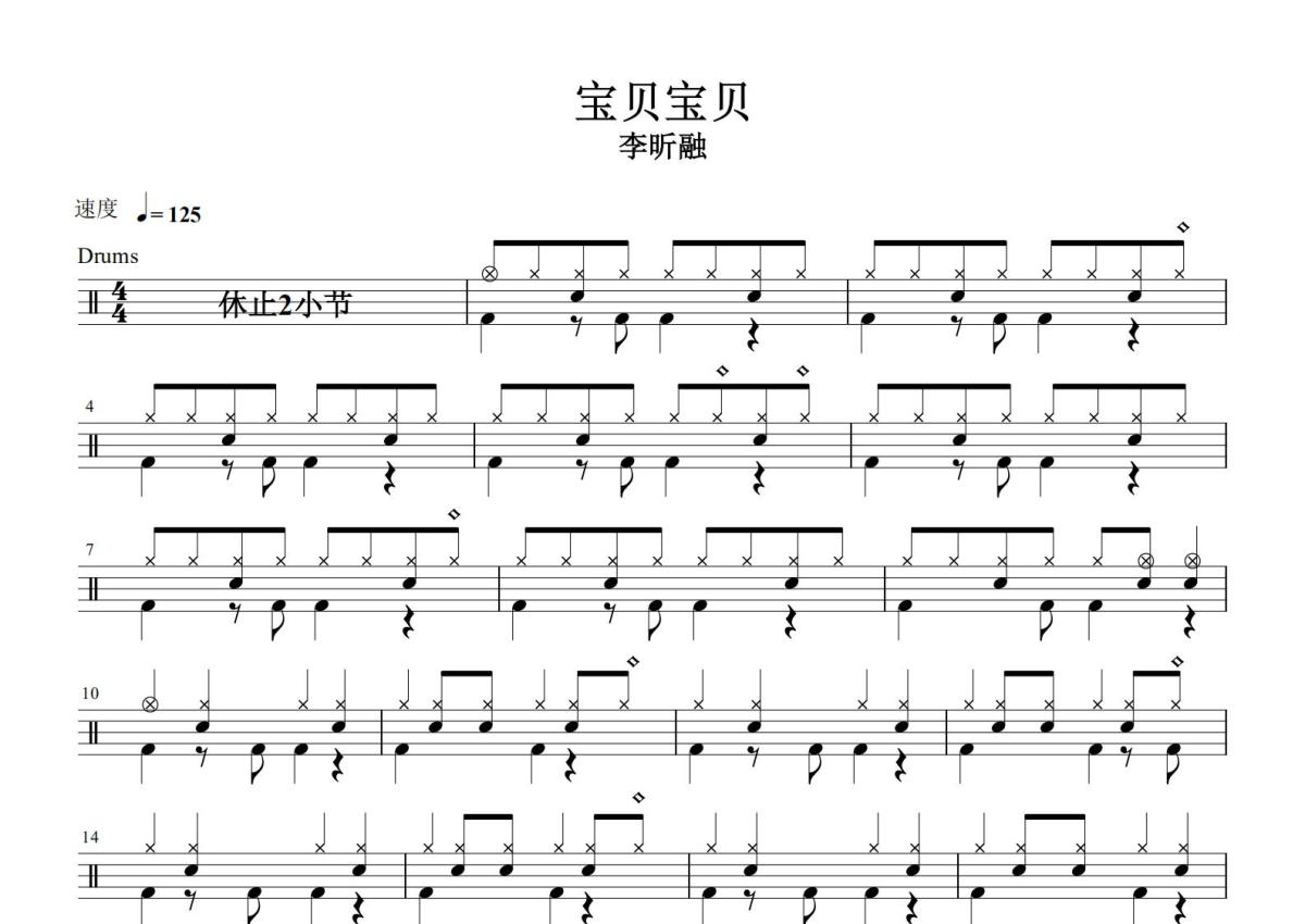 李昕融《宝贝宝贝》鼓谱 - 架子鼓谱