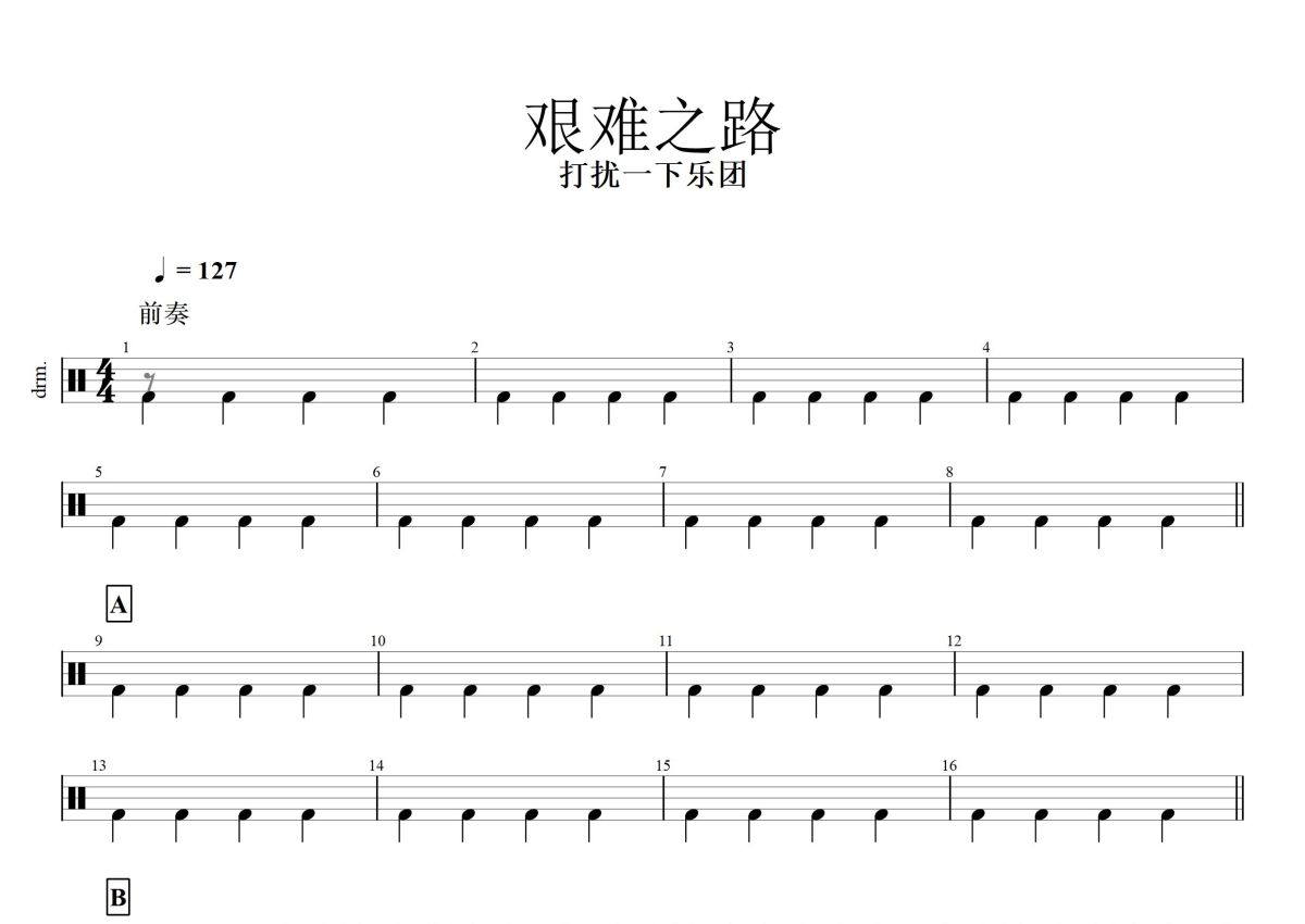 打扰一下乐团《艰难之路》鼓谱 - 架子鼓谱