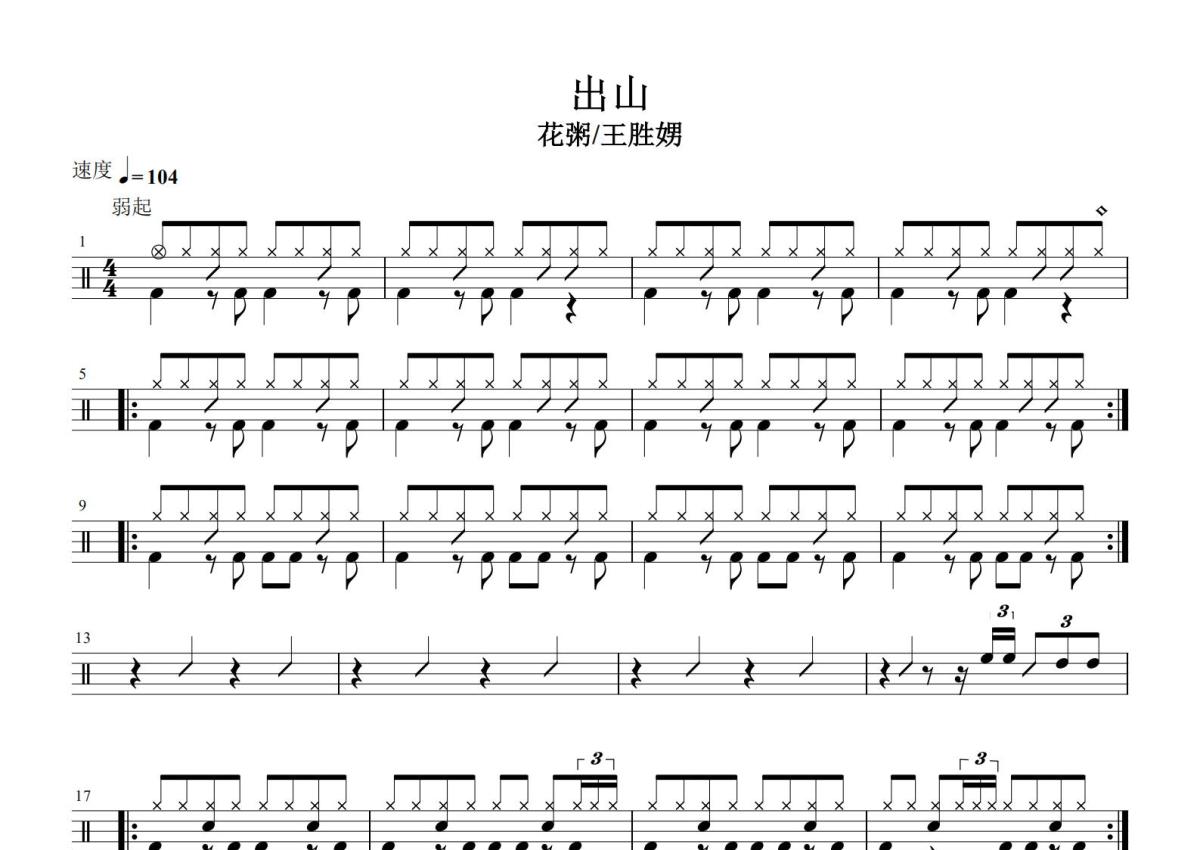 王胜男和花粥《出山》鼓谱 - 架子鼓谱
