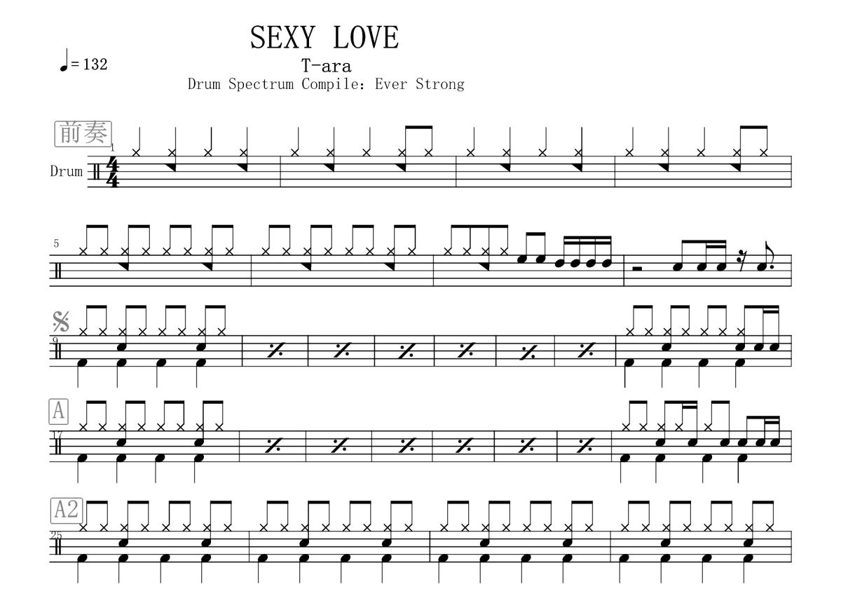 T-ara《SexyLove》鼓谱 - 架子鼓谱