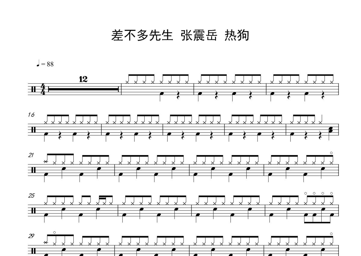 张震岳&热狗《差不多先生》鼓谱 - 架子鼓谱