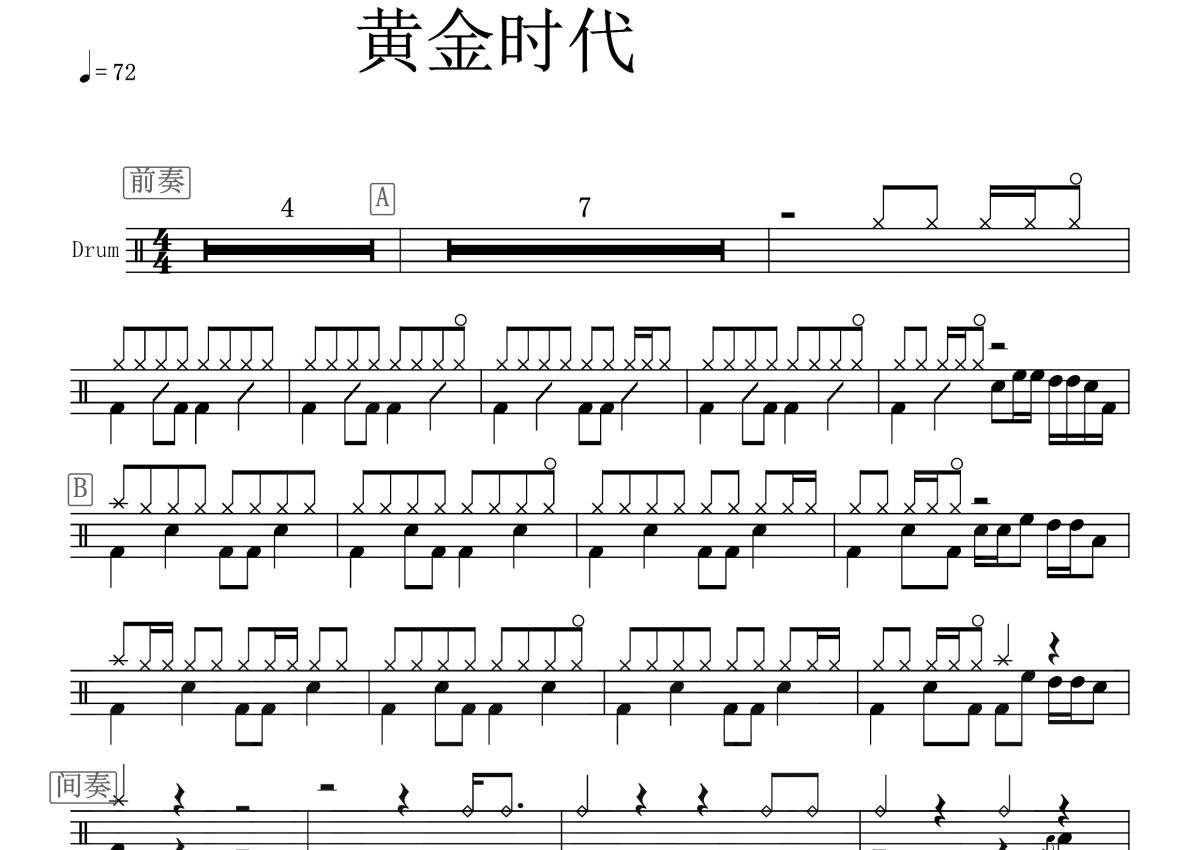 《黄金时代》是陈奕迅演唱的一首歌曲,这份鼓谱共有两张高清图谱,图谱由 @打鼓谱 编配上传,图谱使用五线谱编配,使用这份黄金时代架子鼓谱,你将能够轻松地敲打出这首陈奕迅的黄金时代,快来尝试吧。《黄金时代》是陈奕迅的一首粤语歌曲,由柳重言作曲,林夕作词,陈奕迅演唱,收录于专辑《我的快乐时代》,发行于1998年05月26日。
