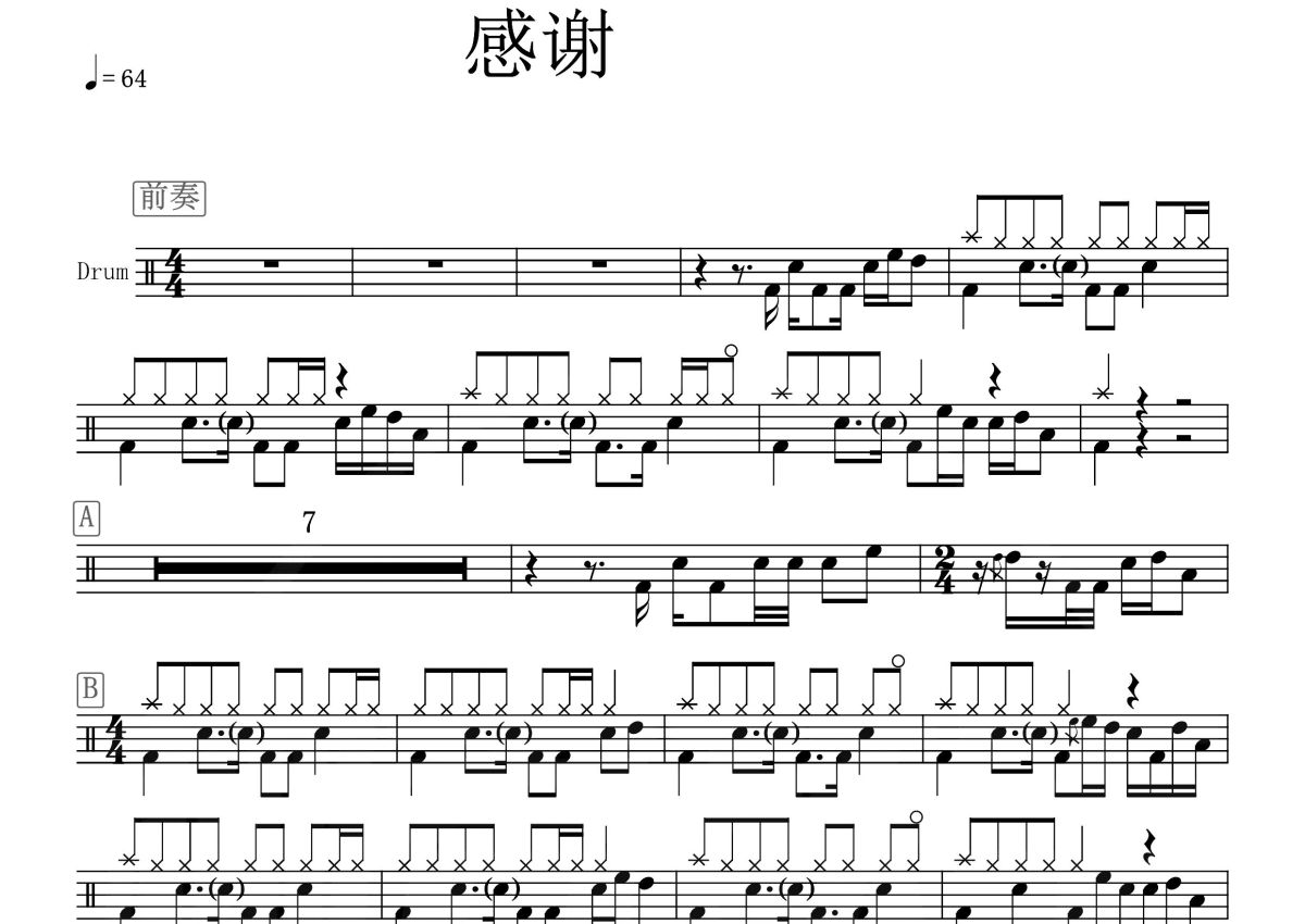 《感谢》是黑龙演唱的一首歌曲,这份鼓谱共有两张高清图谱,图谱由 @打鼓谱 编配上传,图谱使用五线谱编配,使用这份感谢架子鼓谱,你将能够轻松地敲打出这首黑龙的感谢,快来尝试吧。《感谢》是黑龙演唱的一首歌曲。感谢现在以后风雨同舟,明天的梦一起追求!。