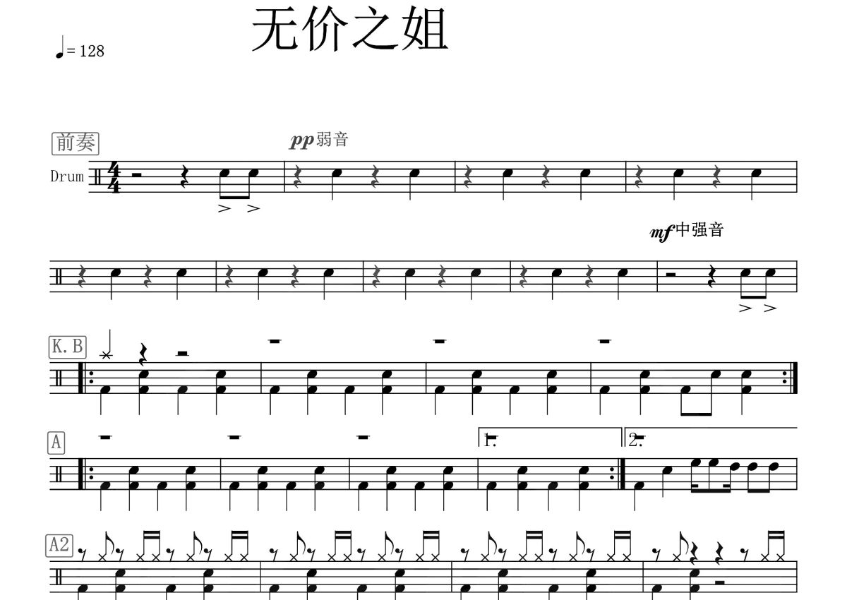 李宇春《无价之姐》鼓谱 - 架子鼓谱