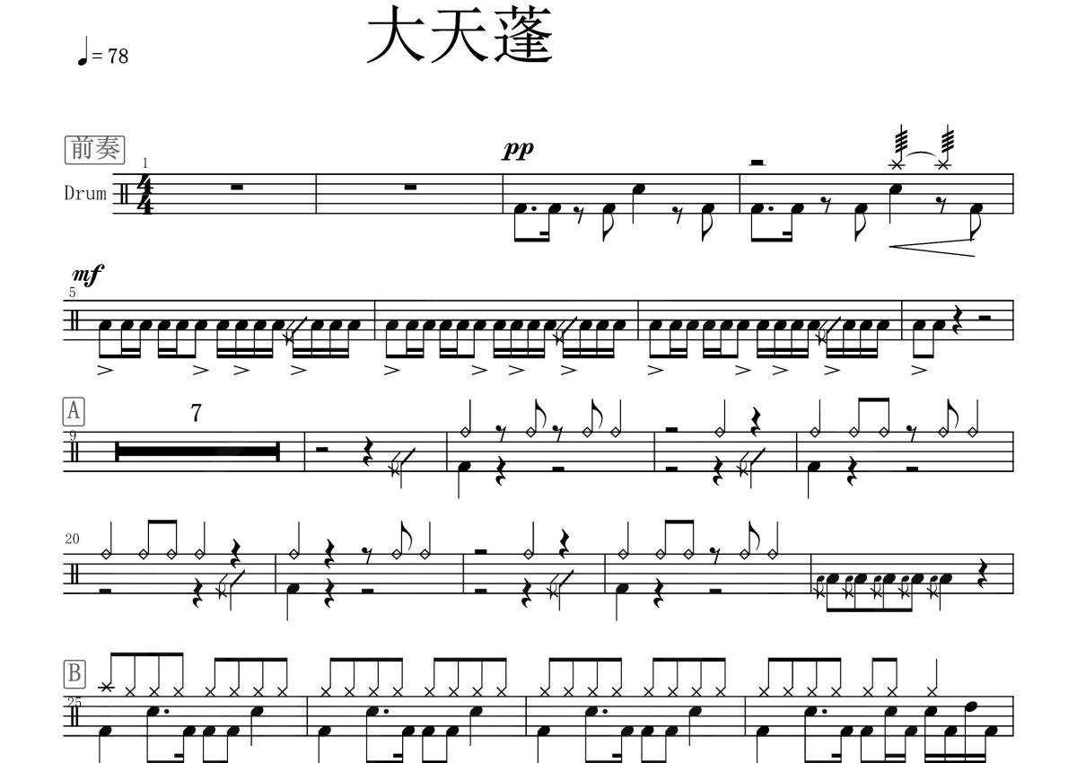 《大天蓬》是李袁杰演唱的一首歌曲,这份鼓谱共有两张高清图谱,图谱由 @打鼓谱 编配上传,图谱使用五线谱编配,使用这份大天蓬架子鼓谱,你将能够轻松地敲打出这首李袁杰的大天蓬,快来尝试吧。音乐裁缝李袁杰。