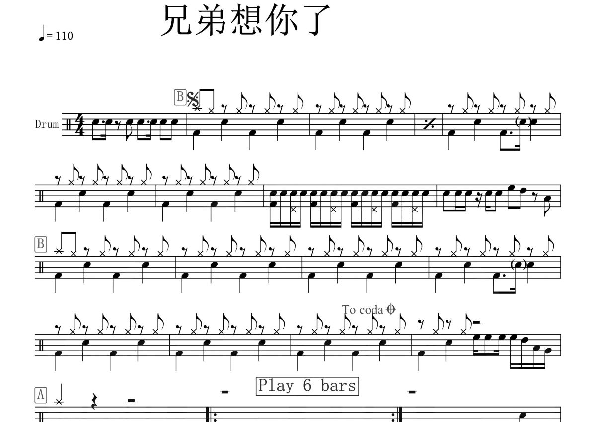 刘潇《兄弟想你了》鼓谱 - 架子鼓谱