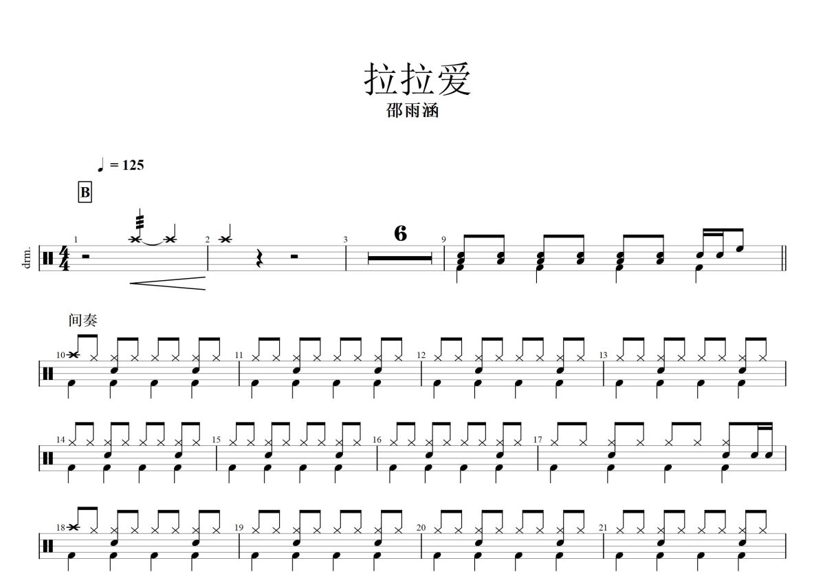 邵雨涵《拉拉爱》鼓谱 - 架子鼓谱