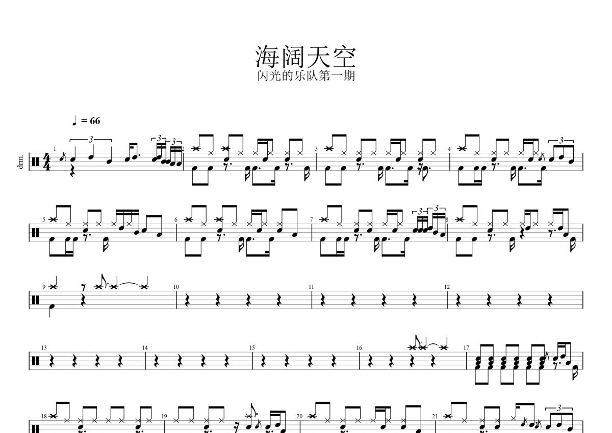 《海阔天空》是信演唱的一首歌曲,这份鼓谱共有一张高清图谱,图谱由 @打鼓谱 编配上传,图谱使用五线谱编配,使用这份海阔天空架子鼓谱,你将能够轻松地敲打出这首信的海阔天空,快来尝试吧。闪光的乐队,信带来《海阔天空》,感动了在场所有的歌手,唐汉霄直接被感动哭了。