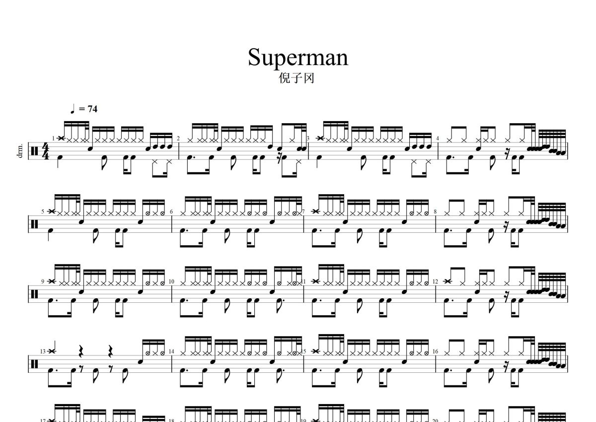 倪子冈《superman》鼓谱 - 架子鼓谱