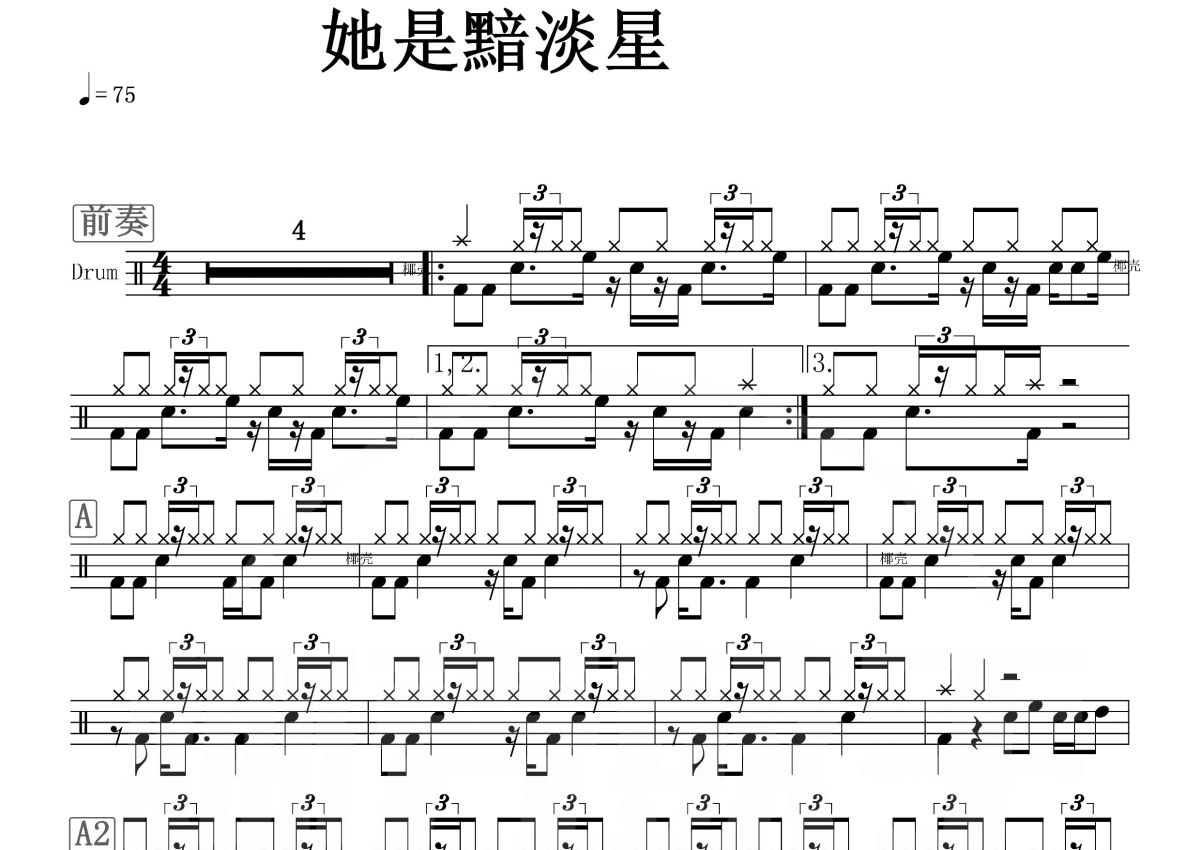 木玛/Third Party《她是黯淡星》鼓谱 - 架子鼓谱