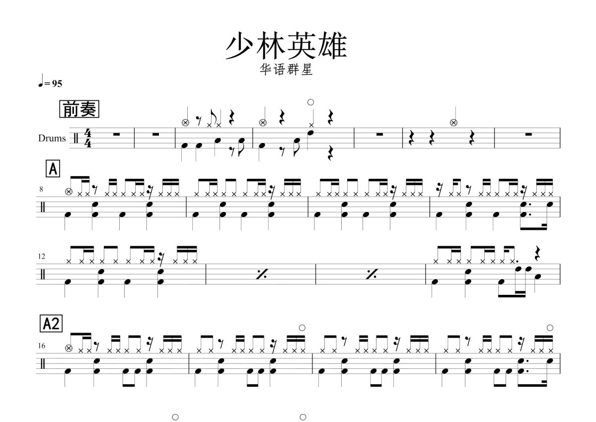 华语群星《少林英雄》鼓谱 - 架子鼓谱