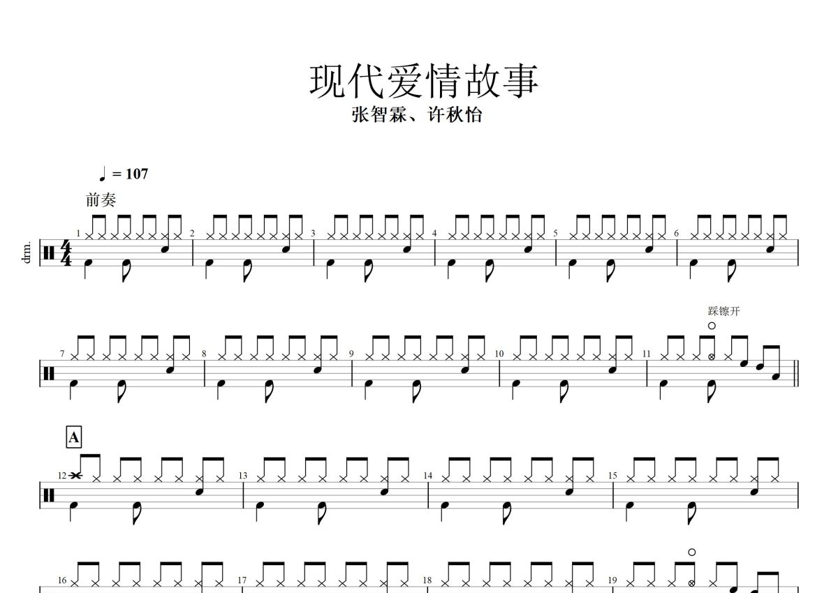 张智霖、许秋怡《现代爱情故事》鼓谱 - 架子鼓谱