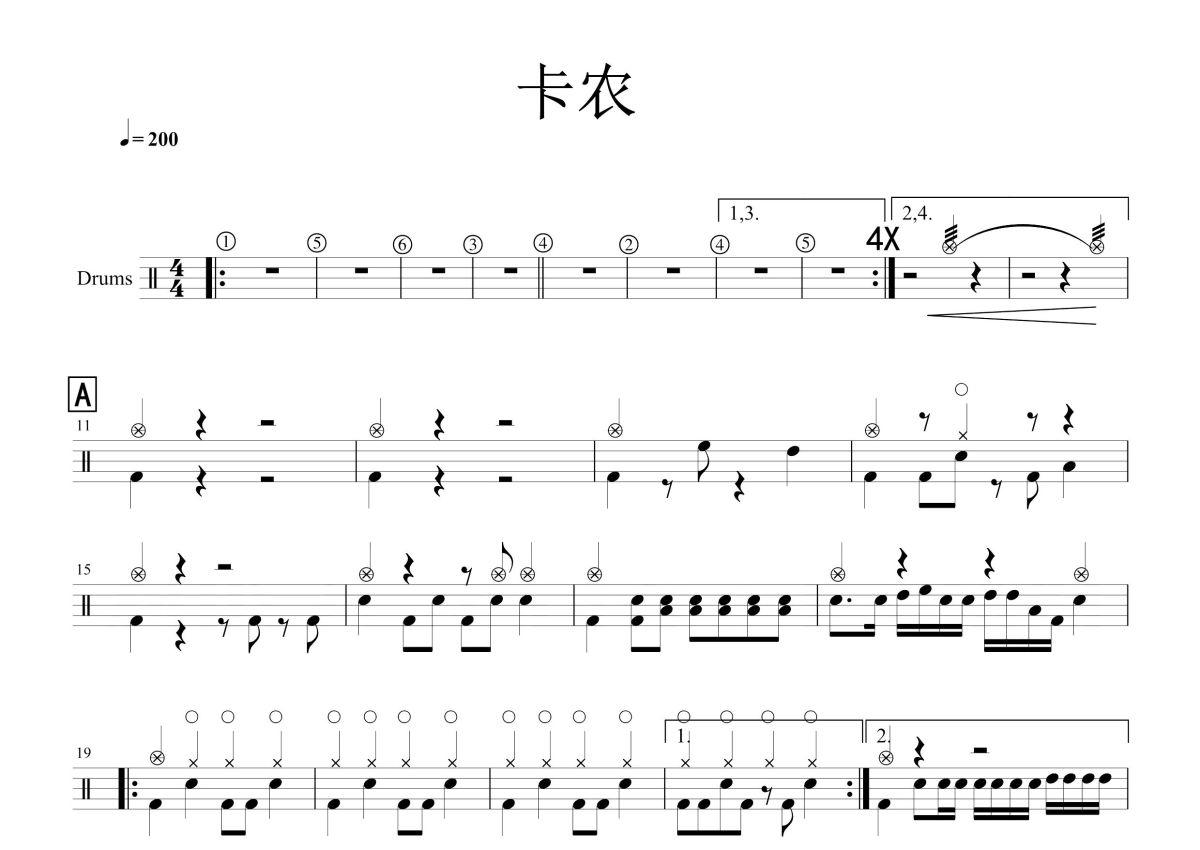 《卡农》是摇滚版演唱的一首歌曲,这份鼓谱共有四张高清图谱,图谱由 @打鼓谱 编配上传,图谱使用五线谱编配,使用这份卡农架子鼓谱,你将能够轻松地敲打出这首摇滚版的卡农,快来尝试吧。卡农Canon——复调音乐的一种,原意为“规律”。一个声部的曲调自始至终追逐着另一声部,直到最后的一个小节,最后的一个和弦,融合在一起,给人以一个神圣的意境。