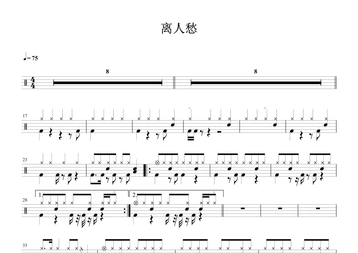 李袁杰《离人愁》鼓谱 - 架子鼓谱