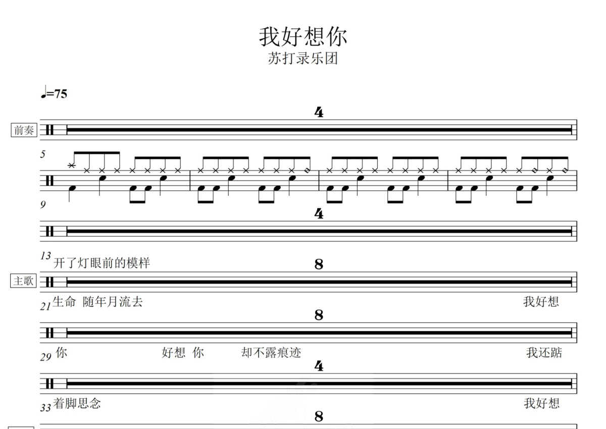 苏打绿乐团《我好想你》鼓谱 - 架子鼓谱
