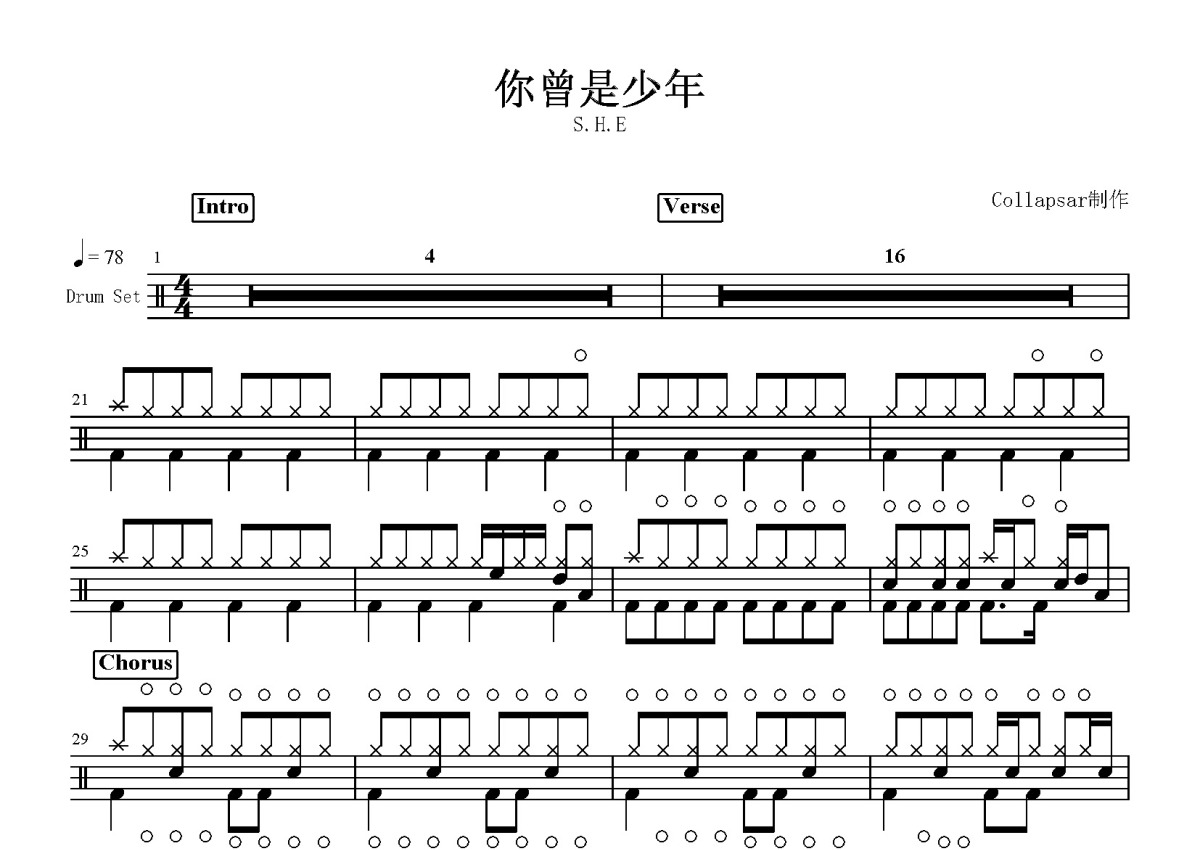 S.H.E《你曾是少年》鼓谱 - 架子鼓谱