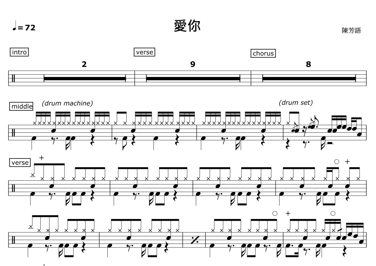 陈芳语《爱你》鼓谱 - 架子鼓谱