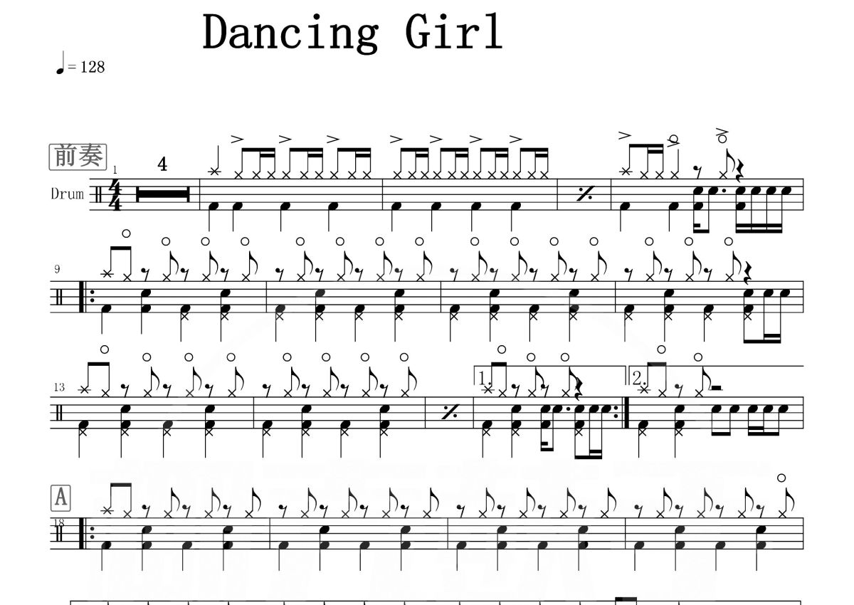 《Dancing Girl》是马赛克乐队演唱的一首歌曲,这份鼓谱共有三张高清图谱,图谱由 @打鼓谱 编配上传,图谱使用五线谱编配,使用这份Dancing Girl架子鼓谱,你将能够轻松地敲打出这首马赛克乐队的Dancing Girl,快来尝试吧。于2009年,创作动感十足且充满情怀的《Dancing girl》、受到了广大乐迷的喜爱,并成为西安“张冠李戴音乐节”的官方主题曲 。