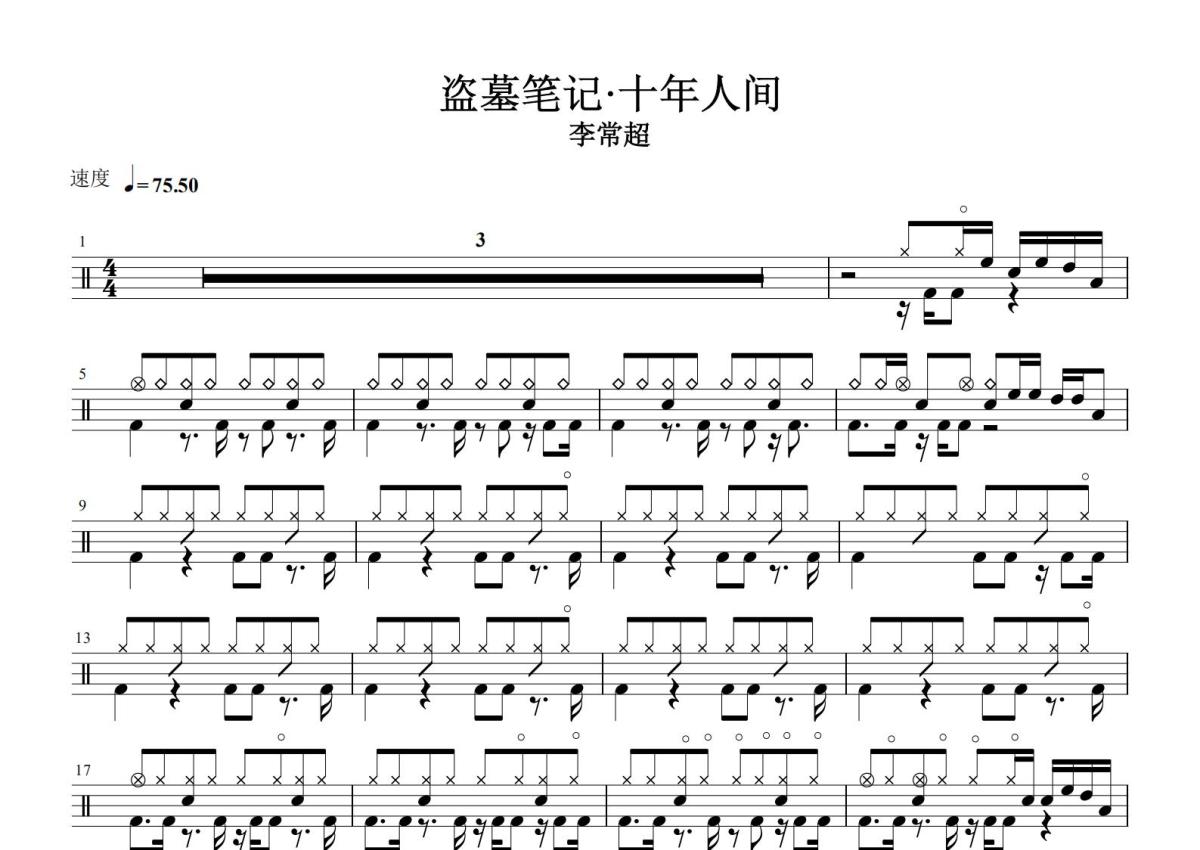 李常超《盗墓笔记》鼓谱 - 架子鼓谱
