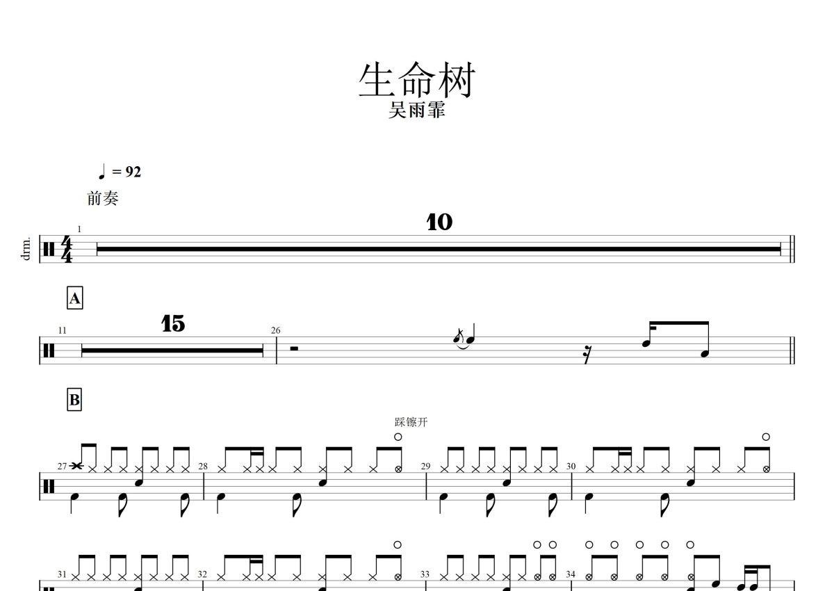 吴雨霏《生命树》鼓谱 - 架子鼓谱