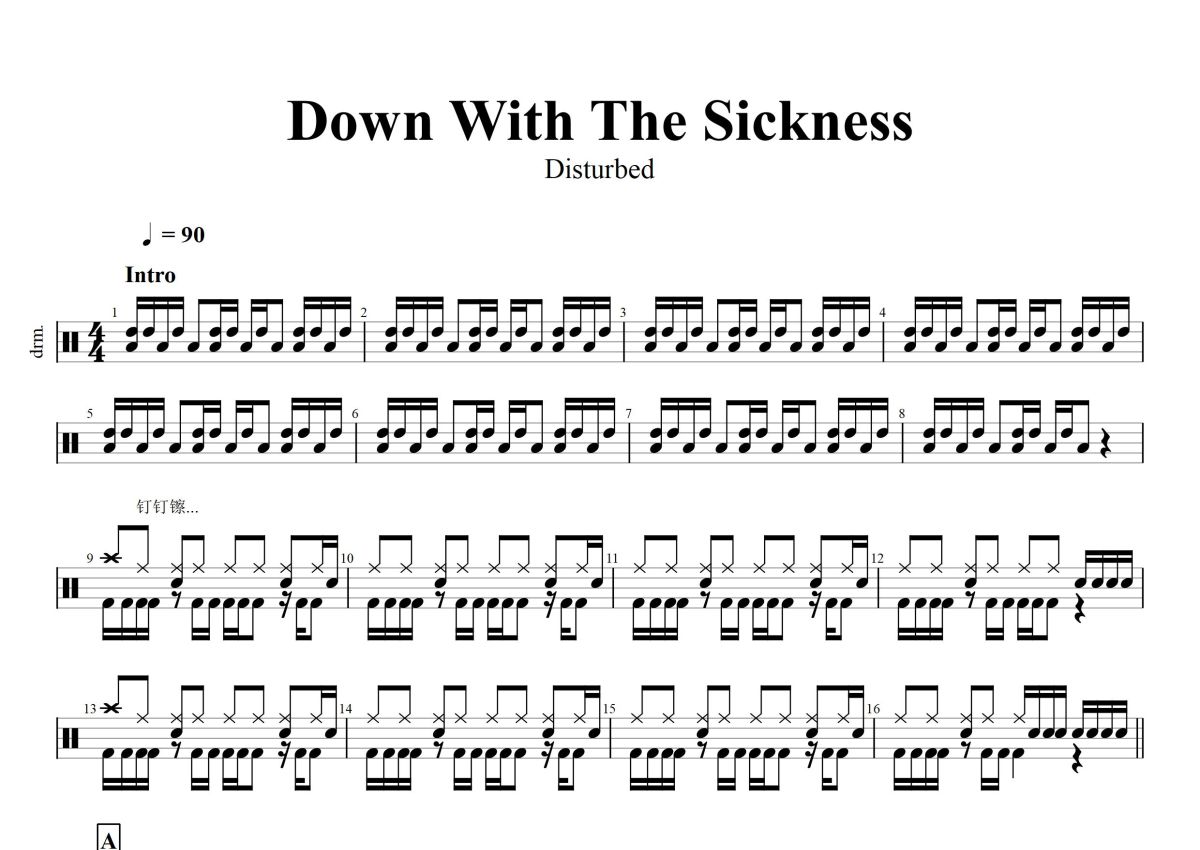 《Down With The Sickness 怒金属》是Disturbed演唱的一首歌曲,这份鼓谱共有三张高清图谱,图谱由 @打鼓谱 编配上传,图谱使用五线谱编配,使用这份Down With The Sickness 怒金属架子鼓谱,你将能够轻松地敲打出这首Disturbed的Down With The Sickness 怒金属,快来尝试吧。介绍:《Down With The Sickness 怒金属》 是 Disturbed 演唱的歌曲,时长04分39秒,由作词,作曲,该歌曲收录在Disturbed年的专辑未知之中,如果您觉得好听的话,就把这首歌分享给...鼓友。