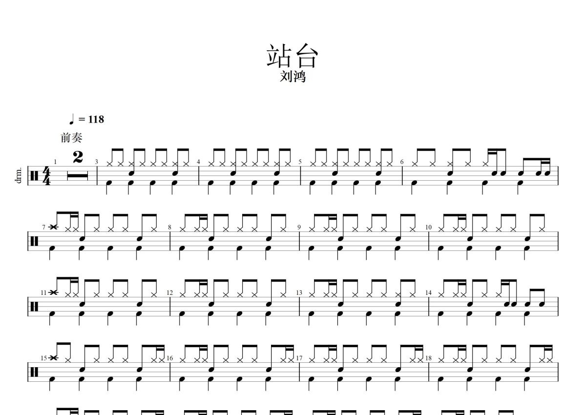 刘鸿《站台》鼓谱 - 架子鼓谱