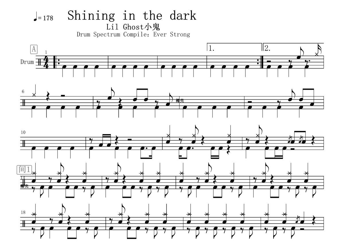 LilGhost小鬼《Shining in the dark》鼓谱 - 架子鼓谱