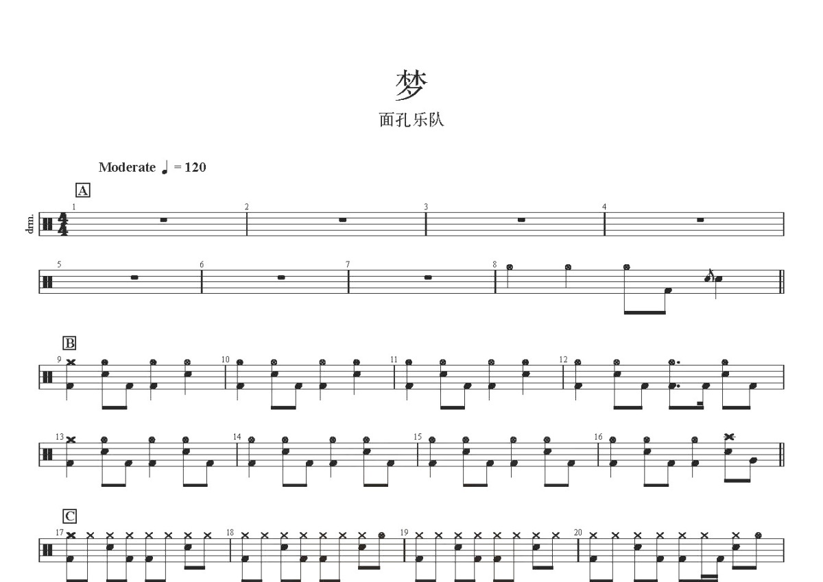 面孔乐队《梦》鼓谱 - 架子鼓谱