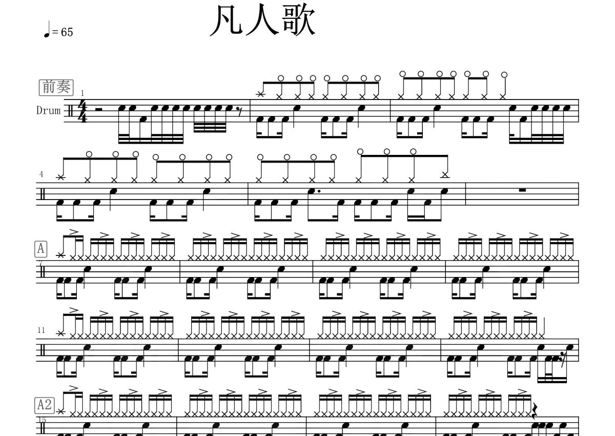 《凡人歌》是五月天&萧敬腾演唱的一首歌曲,这份鼓谱共有三张高清图谱,图谱由 @打鼓谱 编配上传,图谱使用五线谱编配,使用这份凡人歌架子鼓谱,你将能够轻松地敲打出这首五月天&萧敬腾的凡人歌,快来尝试吧。《凡人歌》是李宗盛作词作曲,五月天、萧敬腾翻唱的一首国语歌曲,发行于2017年03月20日。此歌MV由8ID、刘名峰执导,由五月天和萧敬腾共同现场演绎。