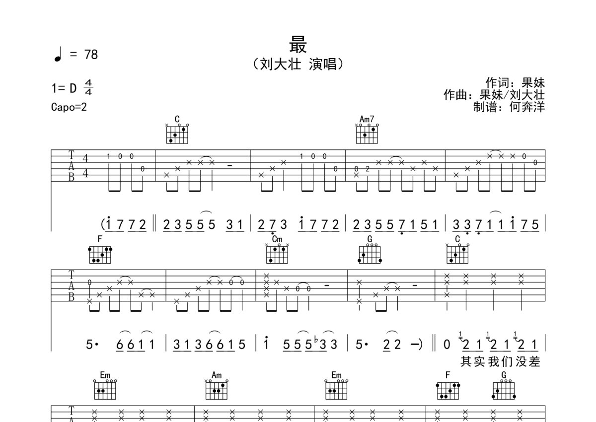 刘大壮《最》吉他谱 - C调弹唱六线谱