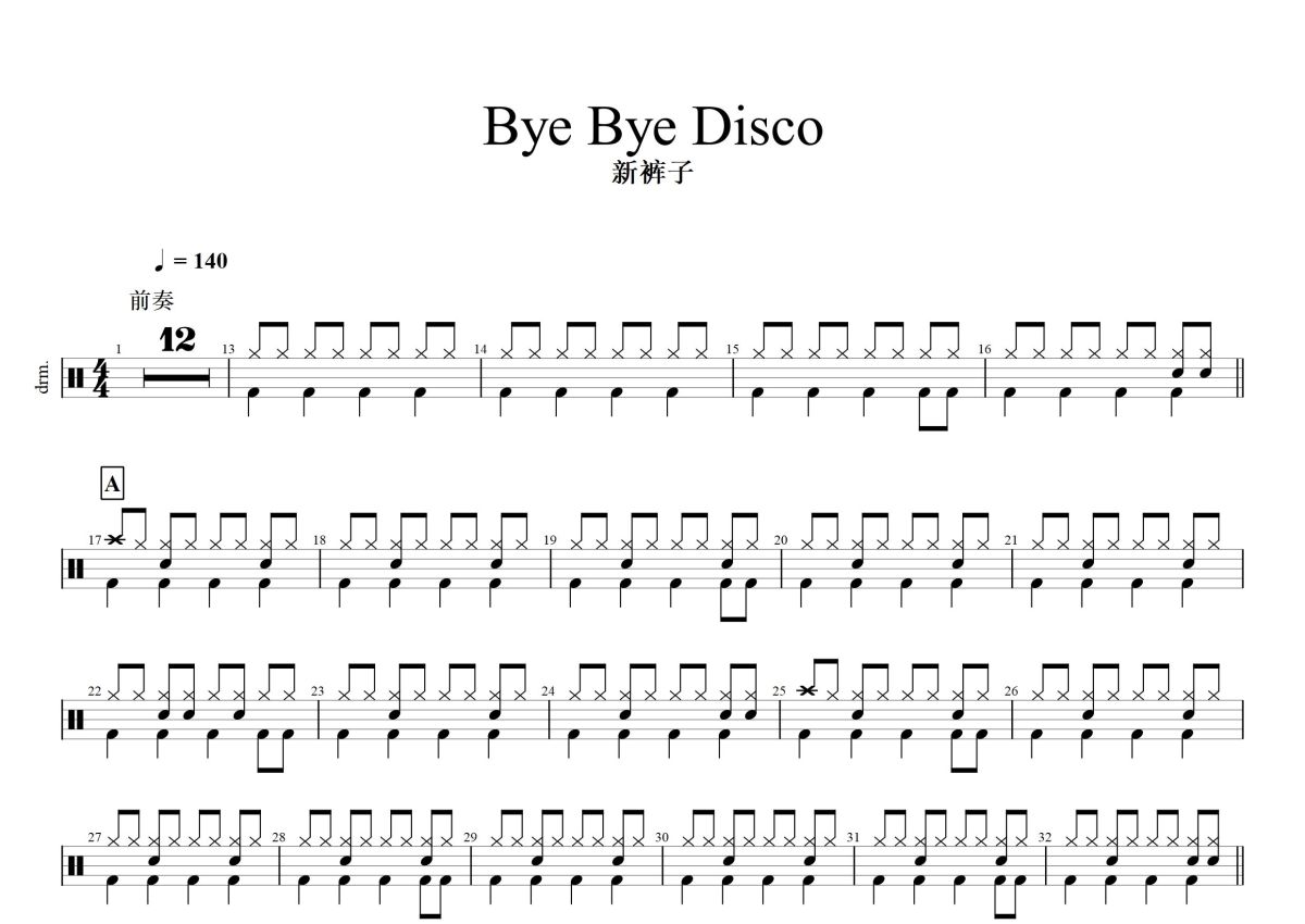 新裤子乐队《Bye Bye Disco》鼓谱 - 架子鼓谱