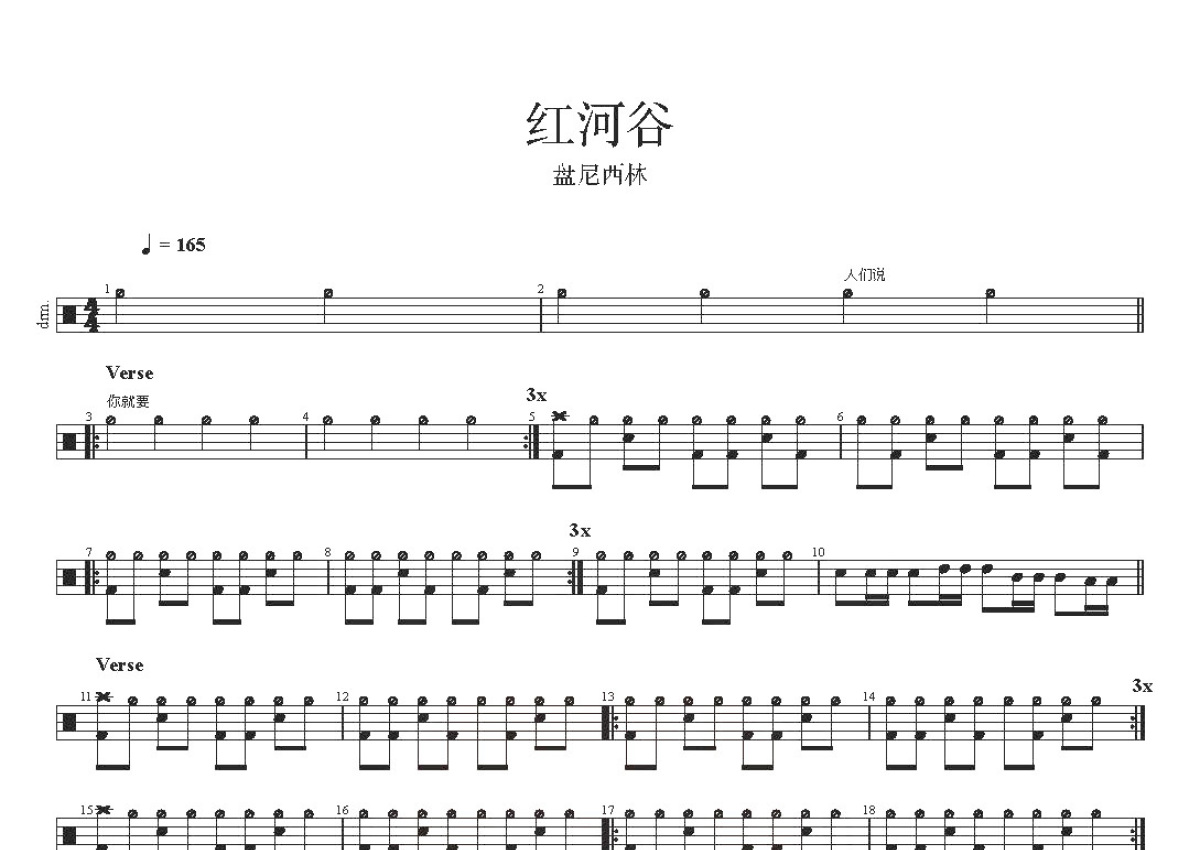 盘尼西林《红河谷》鼓谱 - 架子鼓谱