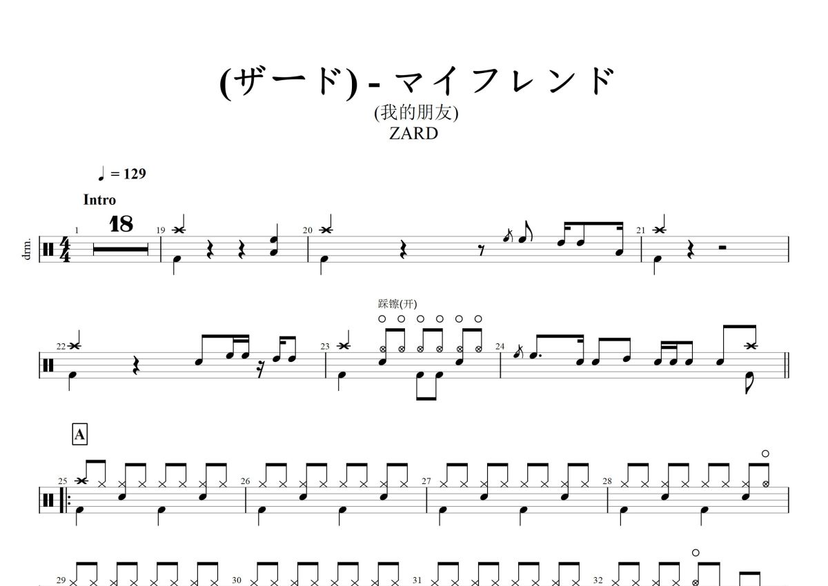 ZARD《ザード) - マイ フレンド 我的朋友)》鼓谱 - 架子鼓谱