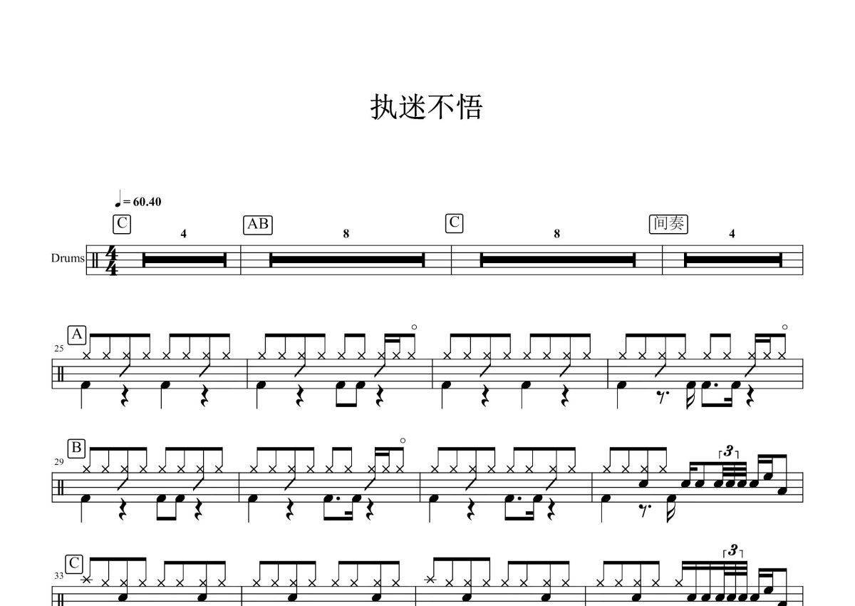 小乐哥《执迷不悟》鼓谱 - 架子鼓谱