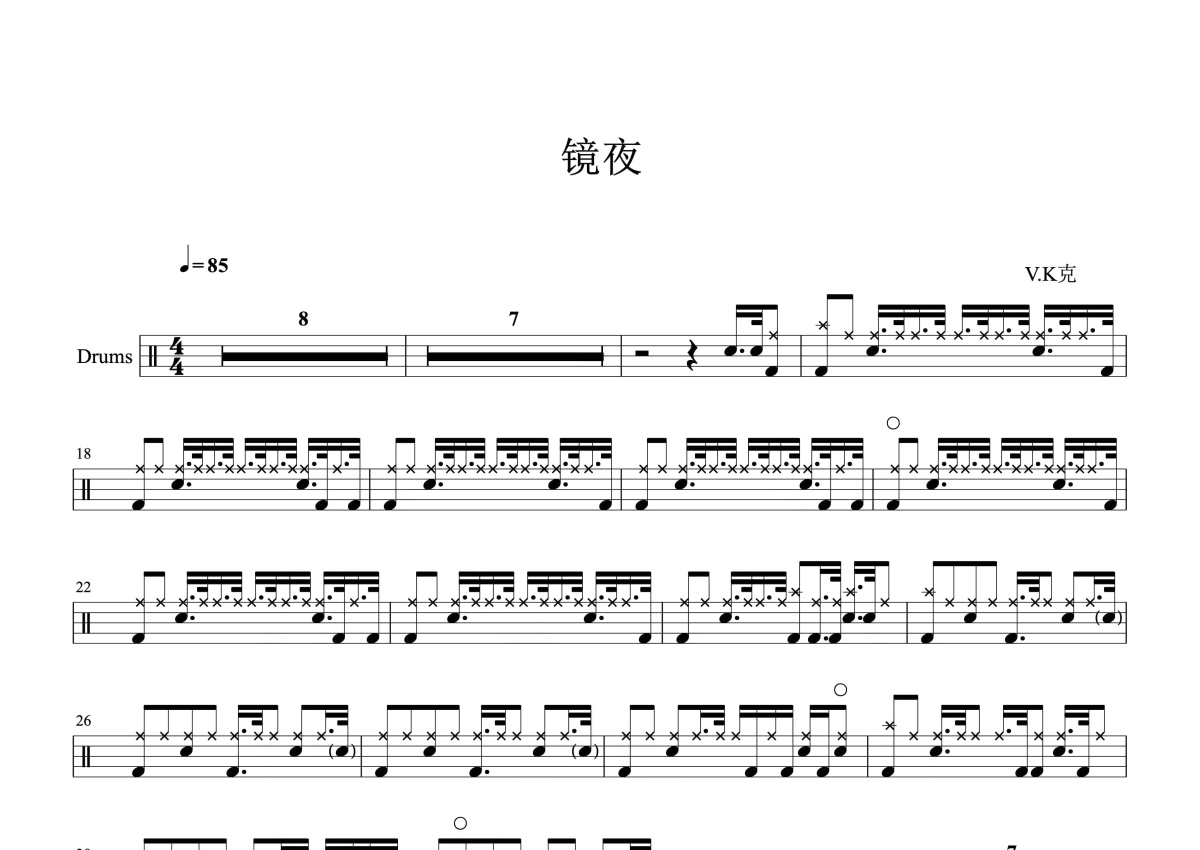 V.K克《镜夜》鼓谱 - 架子鼓谱