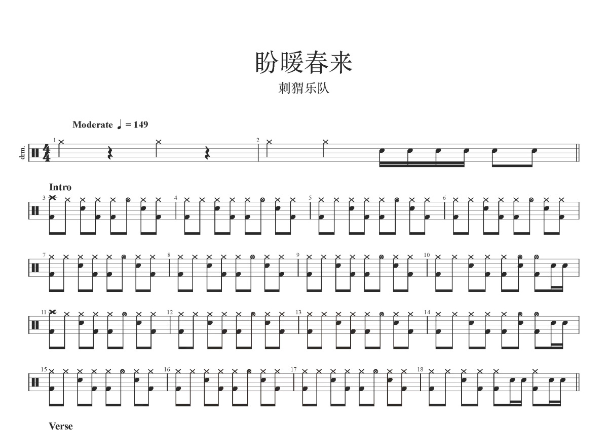 刺猬乐队《盼暖春来》鼓谱 - 架子鼓谱