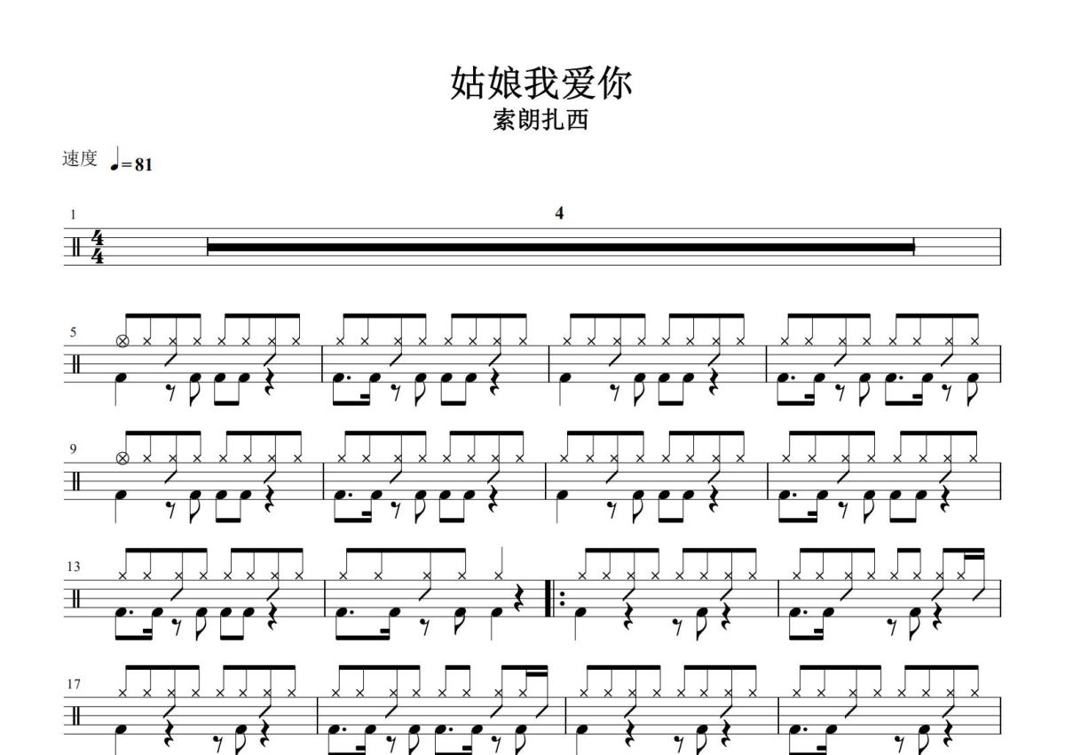 索朗扎西《姑娘我爱你》鼓谱 - 架子鼓谱