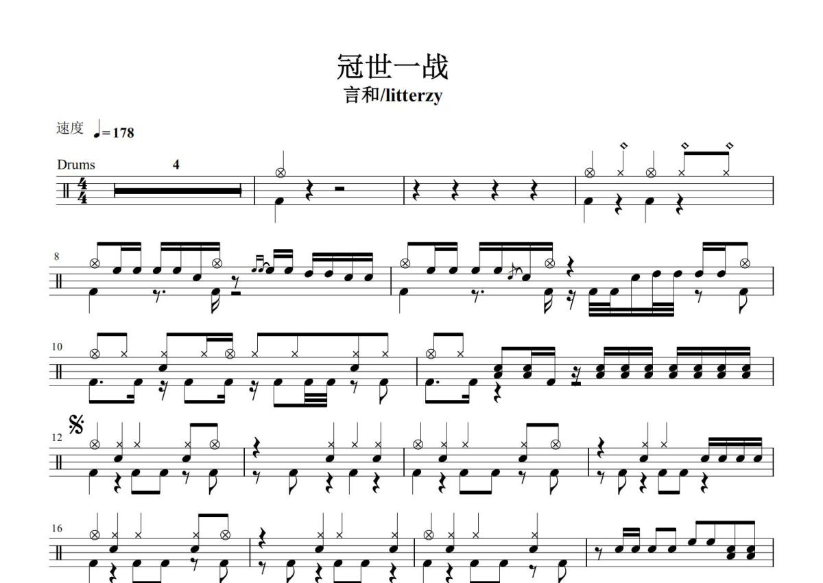 VOCALOID虚拟歌姬《冠世一战》鼓谱 - 架子鼓谱