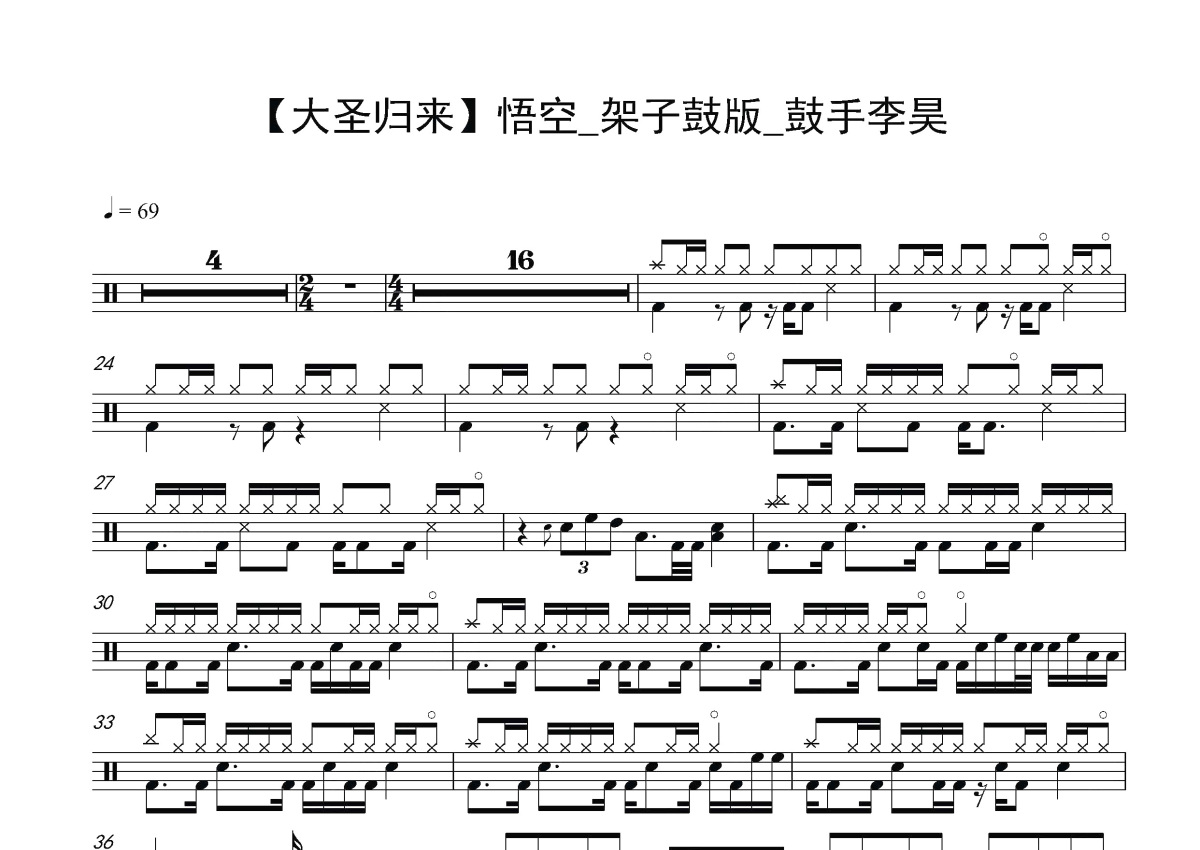 李昊《悟空》鼓谱 - 架子鼓谱