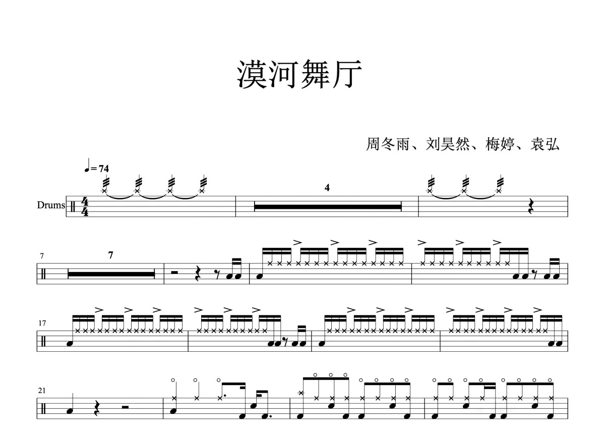 周冬雨/刘昊然/梅婷/袁弘《漠河舞厅》鼓谱 - 架子鼓谱