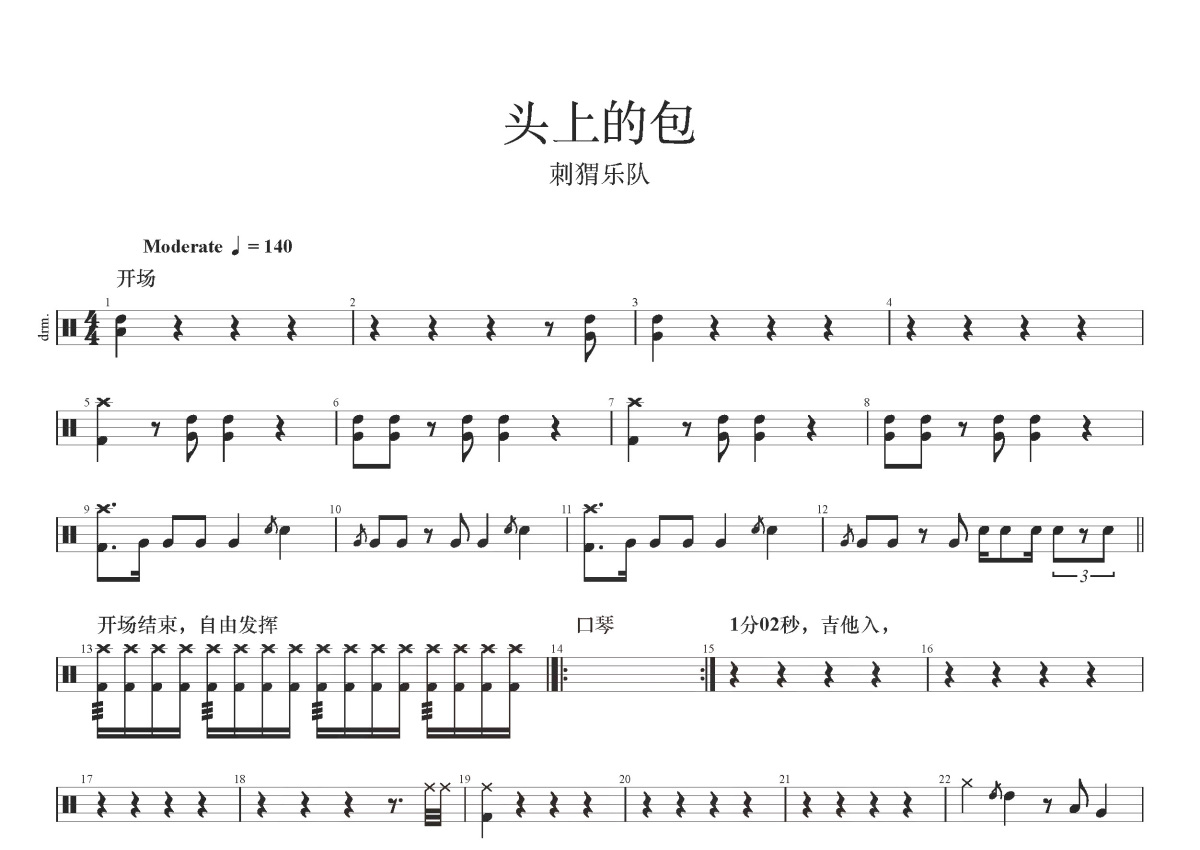 刺猬乐队《头上的包》鼓谱 - 架子鼓谱