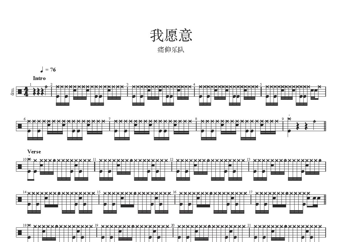 痛仰乐队《我愿意》鼓谱 - 架子鼓谱