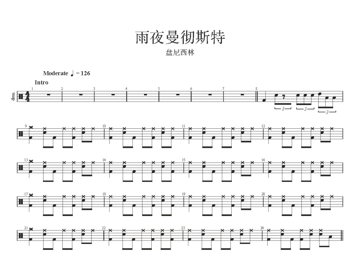 盘尼西林《雨夜曼彻斯特》鼓谱 - 架子鼓谱