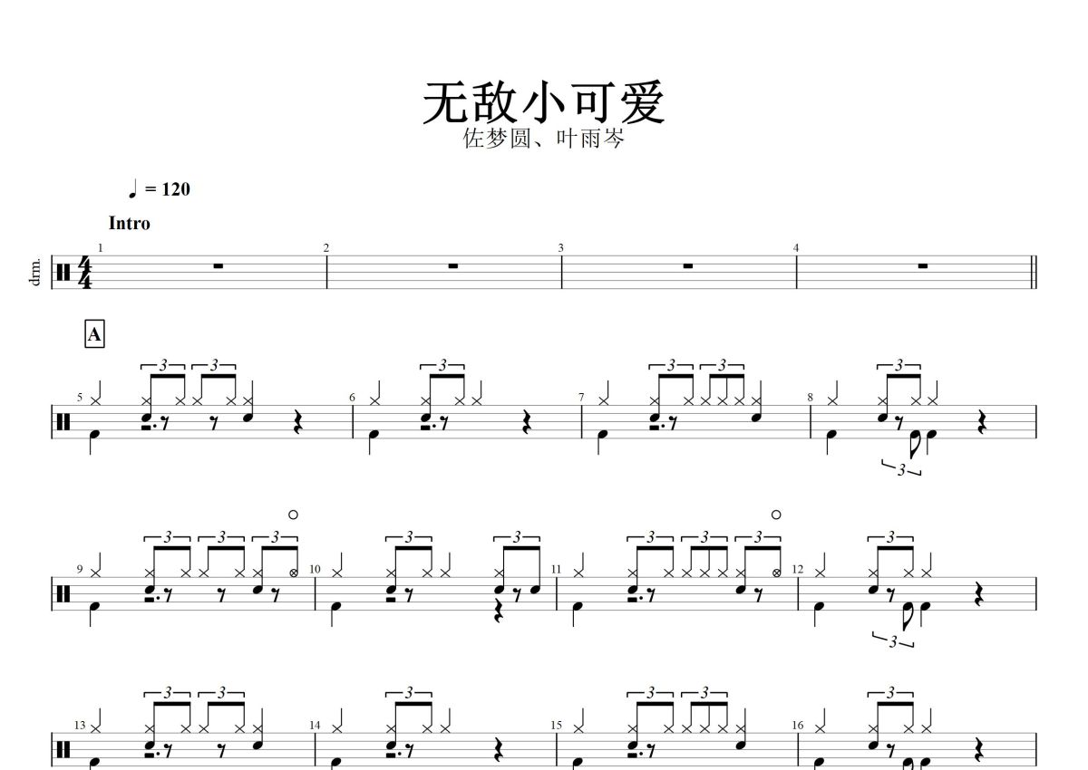 佐梦圆/叶雨岑/佐梦圆《无敌小可爱》鼓谱 - 架子鼓谱