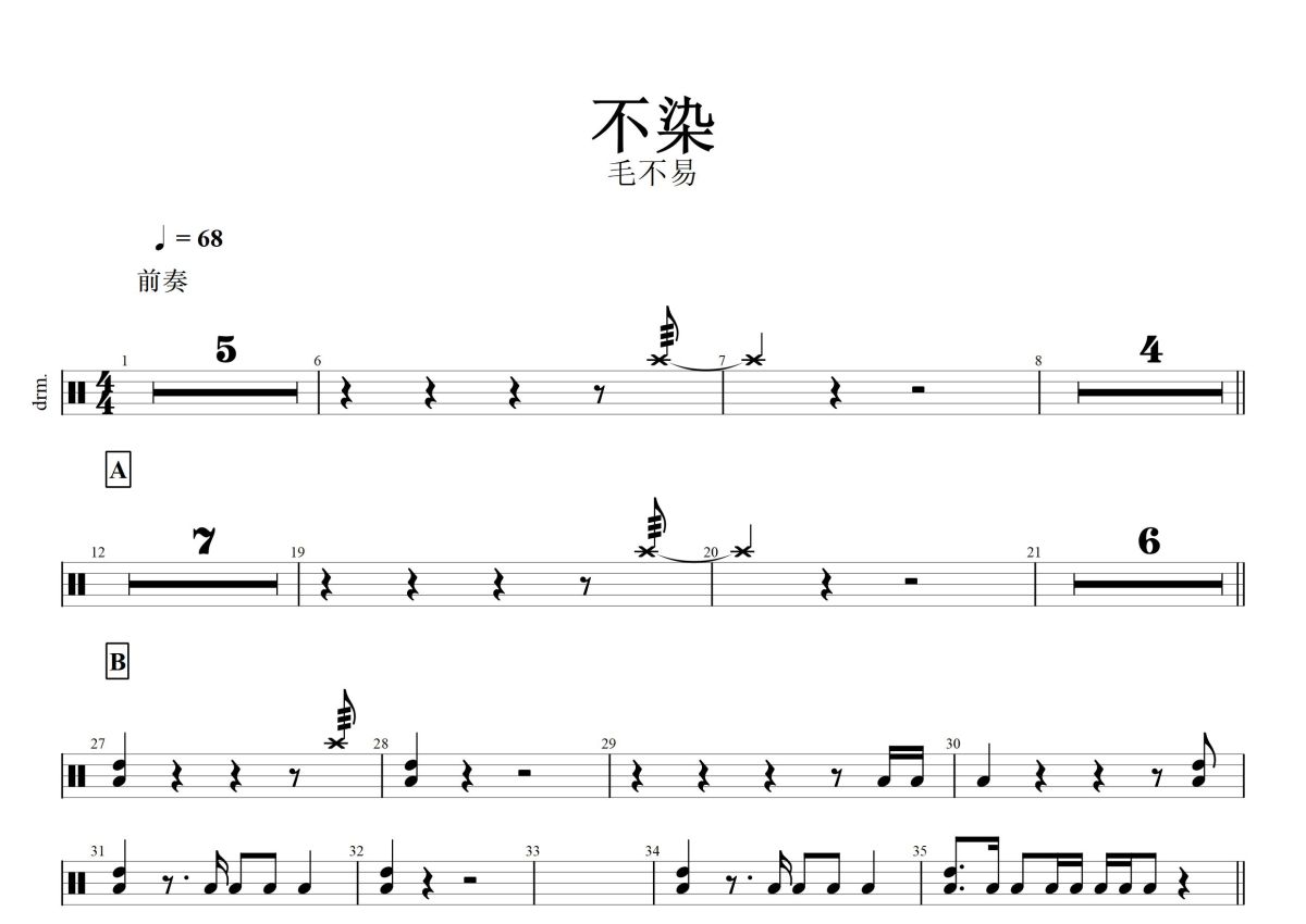 毛不易《不染》鼓谱 - 架子鼓谱