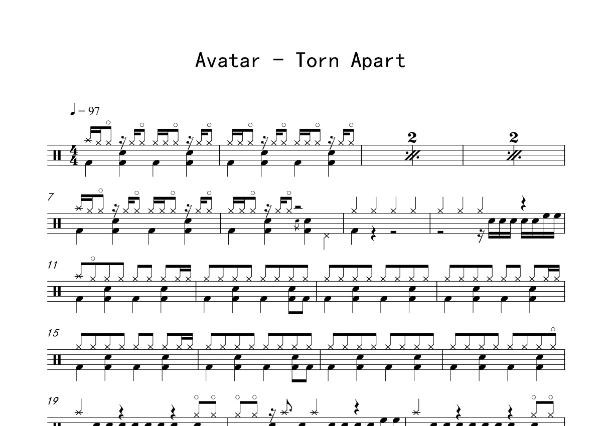 Avatar《Torn Apart》鼓谱 - 架子鼓谱