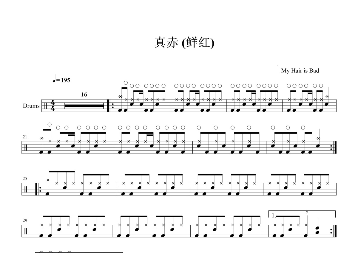 My Hair is Bad《真赤)》鼓谱 - 架子鼓谱